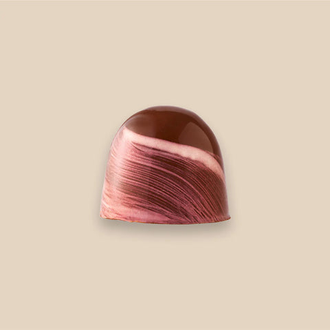Deze verfijnde melk chocolade bonbon bevat de exotische zoetheid van lychee, subtiel verrijkt met een vleugje rozenwater, die samen een delicate en verfijnde smaakervaring bieden. Frisse framboos voegt een levendige zuurgraad en fruitige diepgang toe, wat zorgt voor een perfecte balans tussen zoet, fris en bloemig. Omhuld met 40% Colombiaanse melk chocolade, die de rijke en verfijnde smaken harmonieus samenbrengt en de eetervaring naar een hoger niveau tilt.