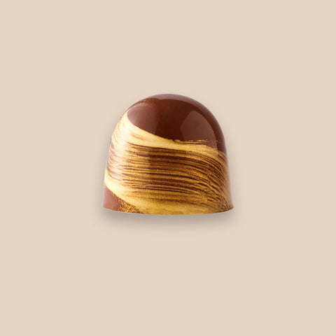 Deze verfijnde melk chocolade bonbon combineert de zachte, nootachtige smaak van geroosterde amandelen met de natuurlijke zoetheid van honing, die samen een rijke en verfijnde smaakervaring bieden. De honing, zorgvuldig geselecteerd voor zijn bloemige en subtiele aroma, versterkt de romigheid van de amandelen en voegt een vleugje zachtheid toe. Omhuld met 40% melk chocolade, die de warme en rijke smaken harmonieus samenbrengt en de eetervaring tot een hoogtepunt brengt.